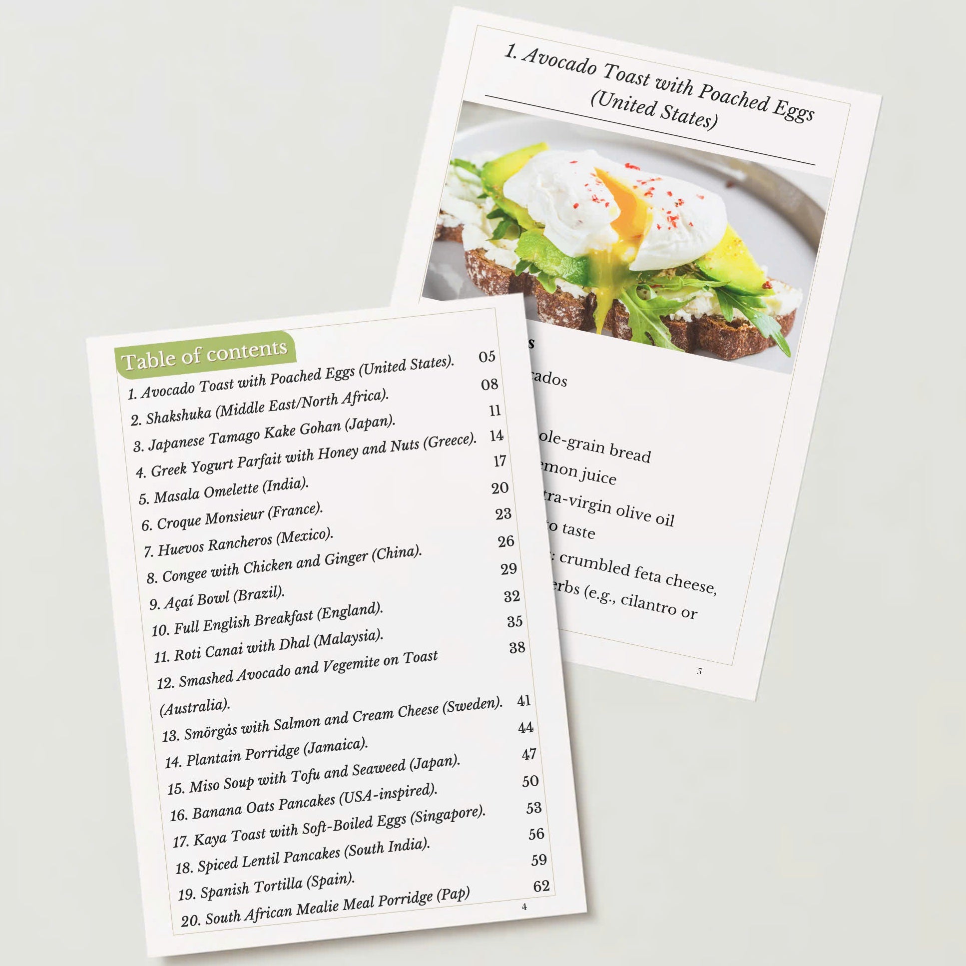 In the hustle and bustle of modern life, finding the time and inspiration to prepare a satisfying, healthy breakfast can be challenging. Many of us rely on quick fixes—pre-packaged bars or sugary cereals—that leave us feeling unsatisfied or sluggish. That’s why the eBook, “Morning Delights: 20 Nutritious Breakfast Recipes from Around the World,” can be a lifesaver. This collection does all the legwork for you, offering diverse, easy-to-follow recipes that will keep both your stomach and taste buds happy. All you need is a few wholesome ingredients, a bit of curiosity, and a willingness to step into the kitchen, ready to explore exciting global flavors.